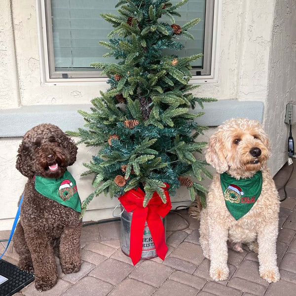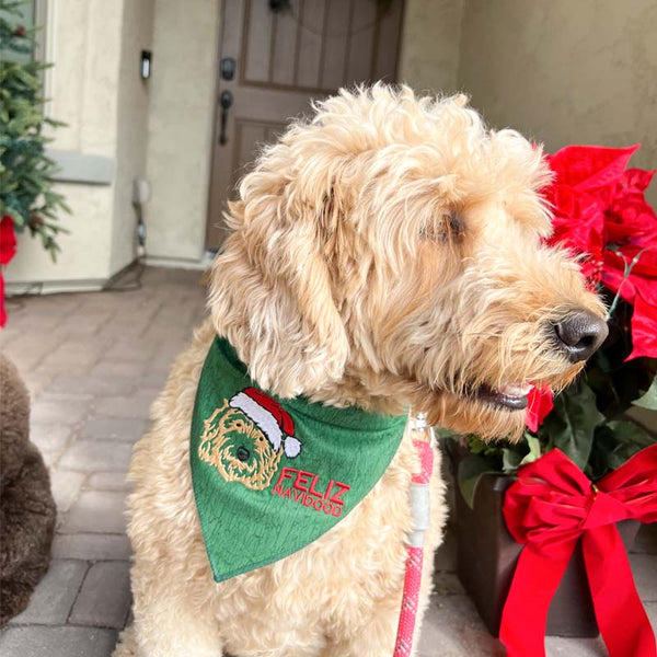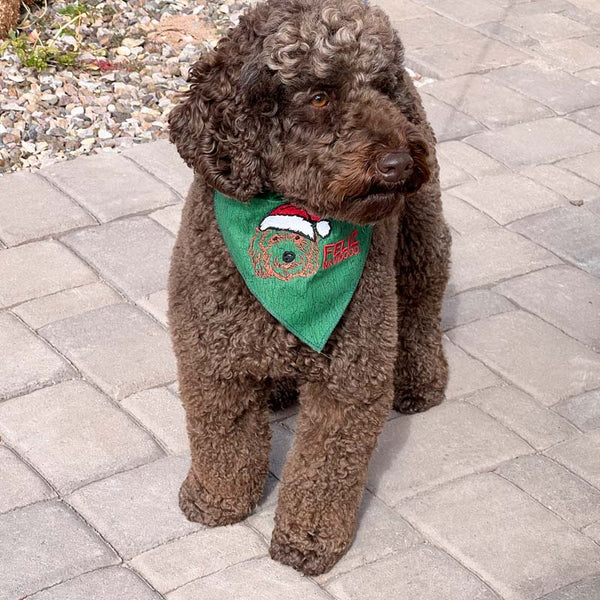 Check it out -- Our 2021 Holiday Bandana specifically for your Doodle Friends. Your choice of colors for your doodle (chocolate (Brown), redwood (reddish brown), or golden.