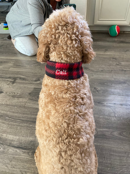 Recommended by DoodCrew Member: Cali! This is a custom-made scarf for your Fur-friend personalized with your pet's name. For personalization option at no additional charge, enter your pets name in the box provided. Orders shipped within 48 hours Monday through Saturday.